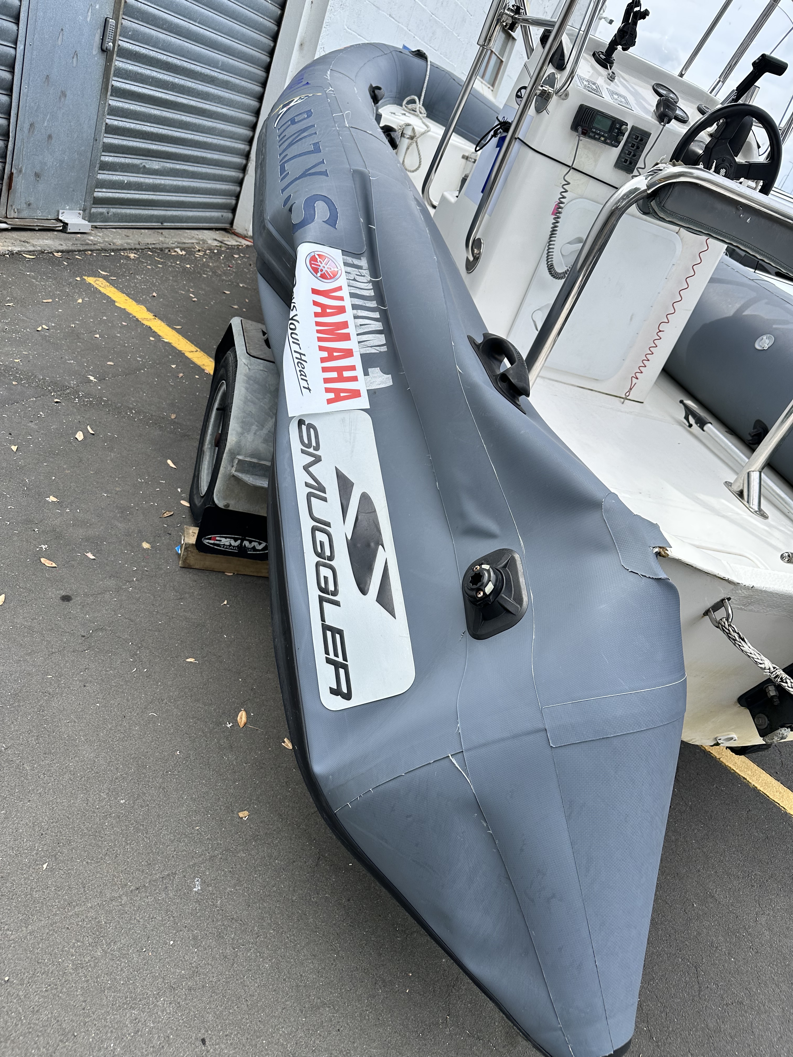 This Hypalon RIB had both ends detaching due to a design flaw. The customer traveled from Coromandel to our workshop, where we successfully repaired and reinforced the ends with added protection to prevent future issues, restoring the boat’s reliability.